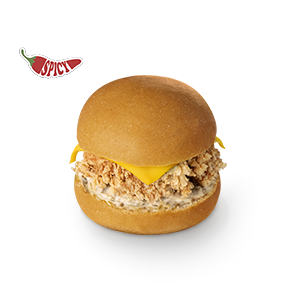 75 گرم استریپس، پنیر ورقه‌ای گودا، سس خیارشور تند، نان مینی مک  به همراه یک عدد سس تک نفره کچاپ و سس مایونز