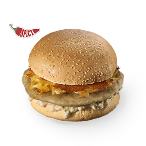 برگر سوخاری شده حاوی گردو، سس خیارشور تند، پنیر پیتزا، چیپس، نان