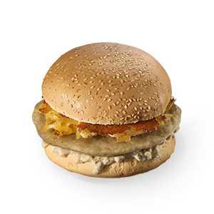 برگر سوخاری شده حاوی گردو، سس خیارشو، پنیر پیتزا، چیپس، نان